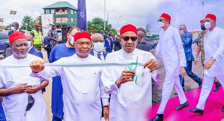 On the two flagship roads he commissioned, an excited President Buhari said “the roads that cover several Local Governments of the State will serve as major stimulants to the local economy and by extension the economy of Imo State.”