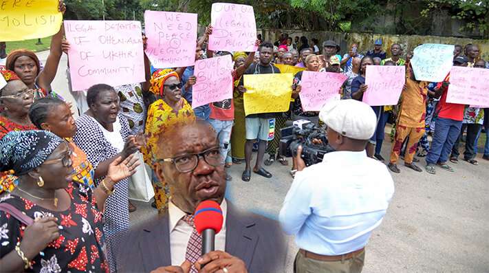 People of Ulegun in Okha Local Government, had embarked on protests since Monday over the detention of the Village Head, Eghosasare Omoregie and the Chief Priest Philip Uwuoroya by the Police on the orders of the Oba of Benin.