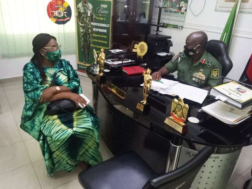 Ondo state coordinator of the NYSC, Mrs Grace Akpabio, met with the Brigade Commander, 32 Artillery Brigade of the Nigerian Army, Brigadier General Zakari Logun Abubakar in Akure to solicit the support of the military.