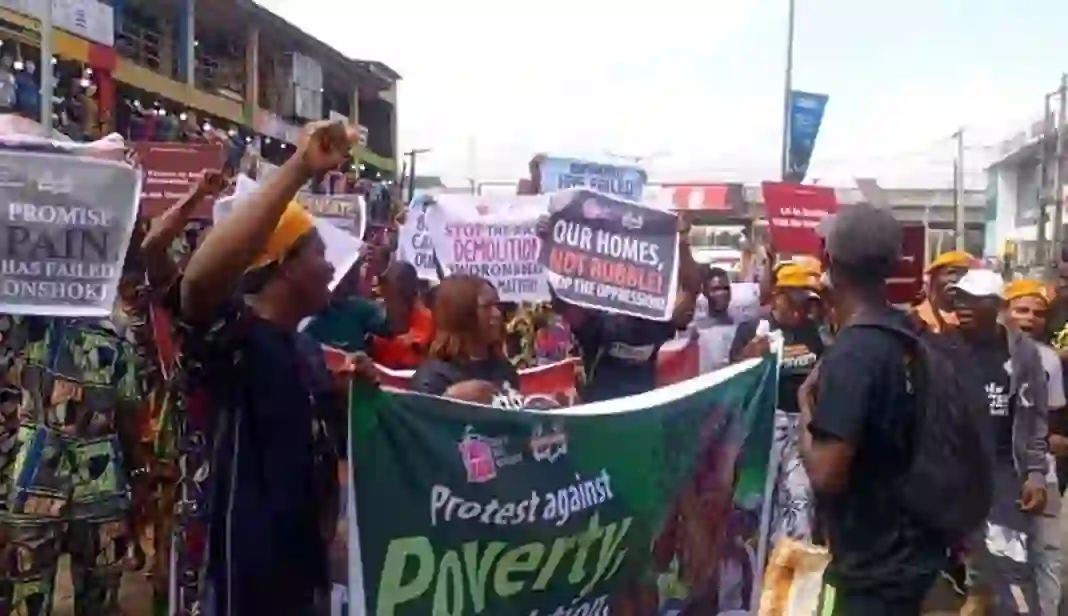The demolition exercises in Lagos, coupled with worsening hunger condition has generated massive protest in the Oworonshoki area.