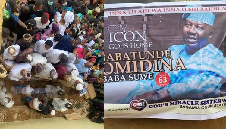 The remains of comic veteran Nollywood Actor, Babatunde Omidina, popularly known as Baba Suwe, were interred at his home in Ikorodu, Lagos State.