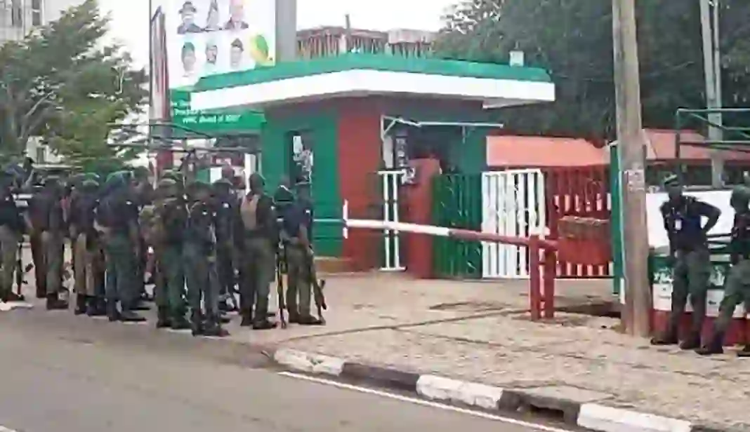 The heavy security presence was reportedly aimed at preventing the inauguration of the Caretaker Committee of the Edo NLC.