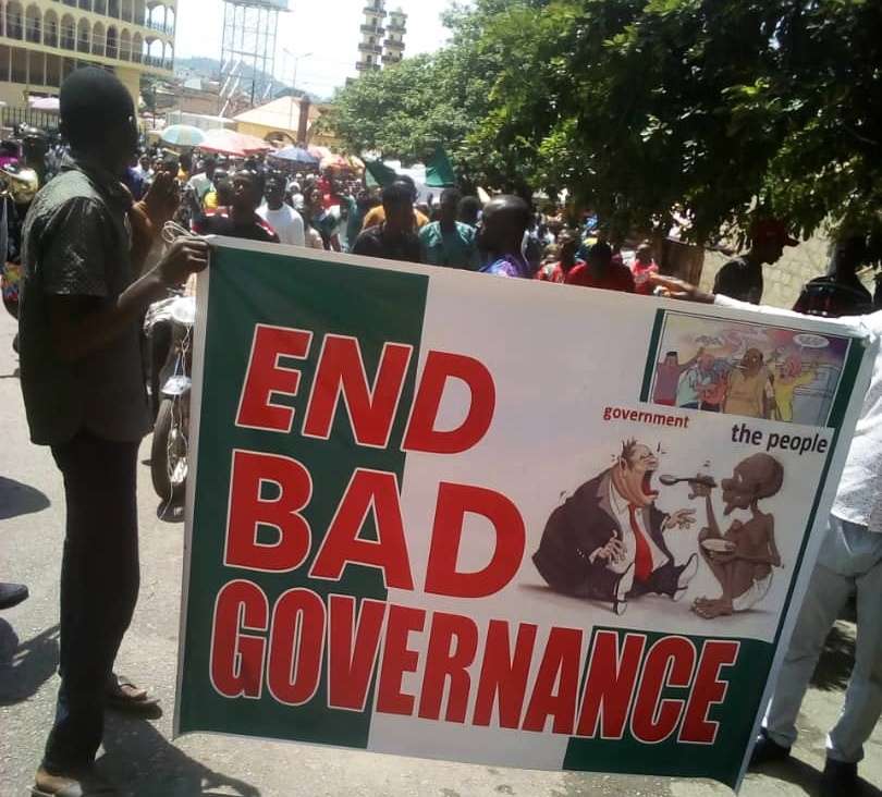 Although the protesters were moving around peacefully with different placards, major roads were deserted with no presence of security agents.